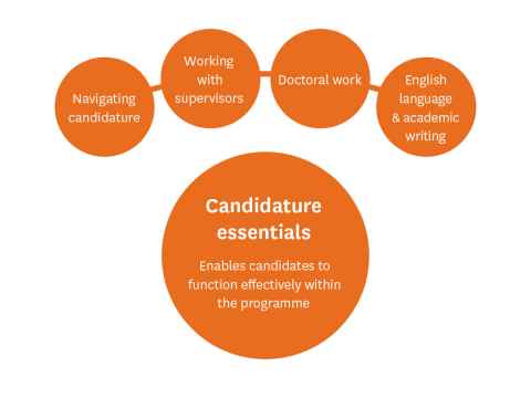 Courses, workshops and events: Three Minute Thesis; Raising the Bar; SGS Research Showcase; Social media.